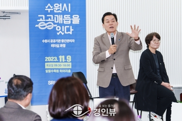 이재준 수원시장은 지난 9일 일원수목원 히어리홀에서 수원시정연구원이 개최한 ‘수원시 공공기관 중간관리자 리더십 과정’에서 “수원시 협력기관들이 함께 새로운 가치를 창출하는 생태계를 만들어야 한다”며 “수원시 공공기관들이 모범적인 협업 생태계 모델을 만들어달라”고 당부했다.