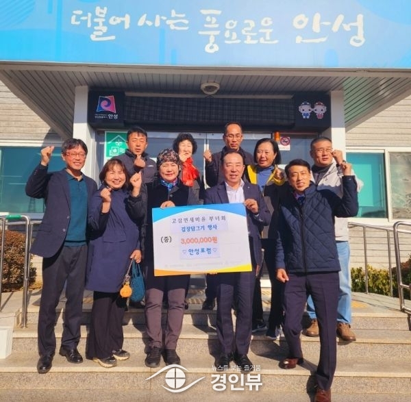 (경인뷰) 안성포럼에서는 지난 13일 고삼면 새마을부녀회 김장담그기 행사를 지원하기 위해 성금 300만원을 전달했다.