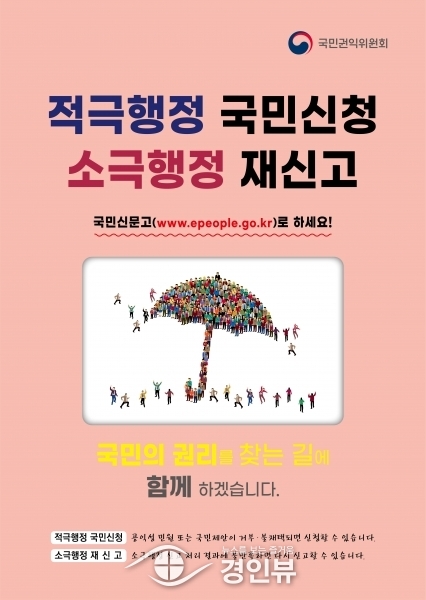 (경인뷰) 수원시가 국민신문고에 불명확한 법령 등으로 인한 공익적 문제의 해결을 신청하는 ‘적극행정 국민신청’ 제도와 소관 행정기관에서 시정되지 않은 소극행정을 국민권익위에 다시 신고할 수 있는 ‘소극행정 재신고’ 제도 홍보에 나섰다.