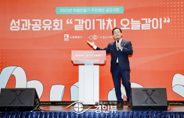 (경인뷰) 수원시는 16일 수원컨벤션센터에서 ‘2023년 마을만들기 공모사업 성과공유회’를 열고 우수마을공동체를 시상했다.