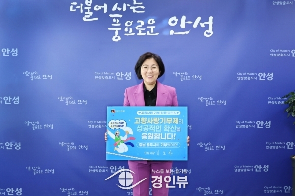 (경인뷰) 김보라 안성시장이 17일 고향사랑기부제의 성공적 확산을 위해 ‘고향사랑기부인증 챌린지’에 동참했다.