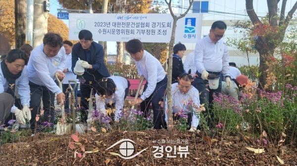 (경인뷰) 대한전문건설협회 경기도회 수원시운영위원회가 6일 수원북중학교 인근에 100㎡ 규모의 손바닥정원을 조성했다.