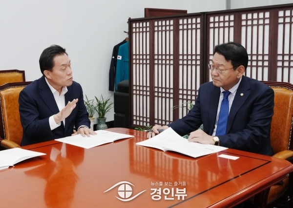 (경인뷰) 이재준 수원특례시장이 22일 국회를 방문해 김교흥 국회 행정안전위원회 위원장을 만나 현재 국회에 계류 중인 ‘지방세법 개정안’의 21대 국회 내 통과를 건의했다.
