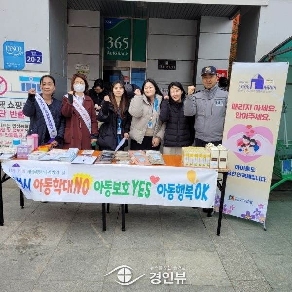 이에 안성시는 “아동학대예방의 날”을 기념하고자 아동학대 유관기관인 안성시청 가족여성과 아동보호팀, 안성경찰서 평택아동보호전문기관이 합동으로 안성 대형마트 3개소와 안성 시내에서 아동학대 예방캠페인을 실시했다.