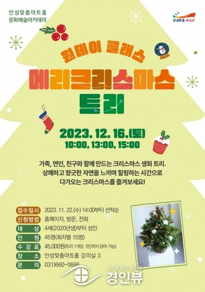 (경인뷰) 안성맞춤아트홀은 오는 12월 16일 원데이 클래스를 운영한다.