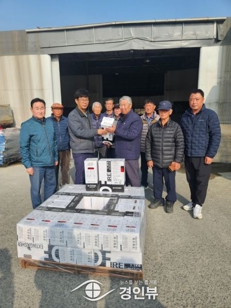 (경인뷰) 지난 23일 ㈜디에프에서 분말소화기를 미양면노인회에 기증했다.