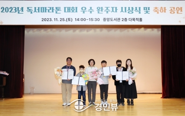 (경인뷰) 안성시 중앙도서관에서는 지난 11월 25일 ‘2023년 독서마라톤 대회 우수 완주자 시상식 및 축하공연을 진행했다.