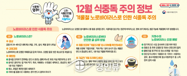 (경인뷰) 안성시 보건소는 겨울철 노로바이러스 식중독 예방을 위해 개인위생 및 식품 관리에 주의를 기울여야 한다고 당부했다.