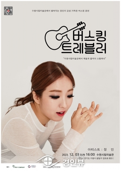 (경인뷰) 경기도 수원시 수원시립미술관은 유튜브 채널 ‘버스킹 트래블러’와 함께 명품 보컬 ‘정인’의 버스킹 공연을 수원시립미술관 로비에서 12월 3일 오후 4시에 개최한다.