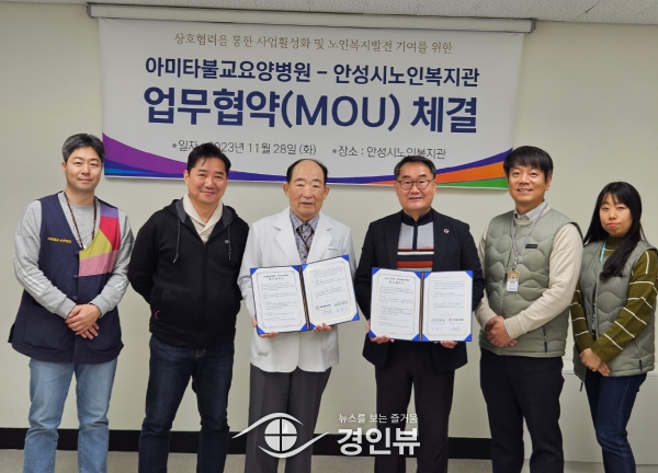 (경인뷰) 안성시노인복지관이 아미타불교요양병원과 지역사회 내 복지향상을 위해 업무협약을 체결했다고 29일 밝혔다.