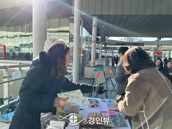 (경인뷰) 수원시가 여성폭력 추방 주간을 맞아 1일 수원역 환승센터에서 ‘여성폭력 인식개선 캠페인’을 펼쳤다.