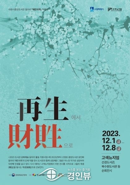 (경인뷰) 수원시 중앙도서관이 12월 8일까지 고색뉴지엄 지하 1층 기획전시실에서 문인화동아리 매란국죽의 작품전 ‘재생에서 재생으로’를 연다.