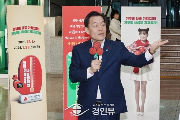 (경인뷰) 수원시는 4일 시청 본관 로비에서 ‘사랑의 온도탑’ 제막식을 열고 ‘희망 2024 나눔캠페인’을 시작했다.
