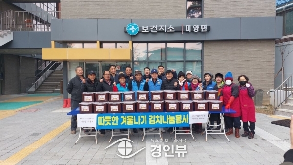(경인뷰) 미양면바르게살기운동위원회는 지난 11월 30일부터 12월 1일까지 미양면행정복지센터에서 이웃 사랑 실천을 위한 “따뜻한 겨울나기 김치나눔봉사” 행사를 가졌다.