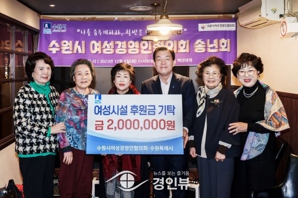 수원시 여성경영인협의회는 5일 권선동 한 음식점에서 열린 수원시 여성경영인협의회 2023년 송년 행사에서 이재준 수원특례시장에게 후원금을 전달했다.