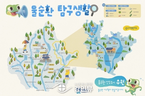 (경인뷰) 수원시가 통합물관리 정책과 관련 시설을 소개하는 ‘물순환 웹지도’를 제작했다.