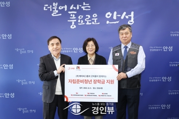(경인뷰) 지난 12월 5일 ㈜케이씨는 국제구호개발 NGO 굿피플과 함께 안성시 자립준비청년을 위해 장학금 1천5백만원을 안성시에 전달했다.