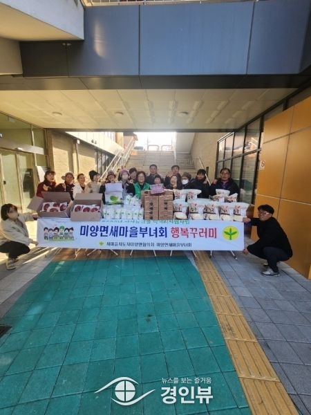 (경인뷰) 미양면새마을부녀회는 지난 8일 미양면행정복지센터에서 행복 꾸러미 나눔 행사를 가졌다 지난 7월부터 시작해 이번이 4회째로 지역에서 생산된 농산물을 이용해 꾸러미를 만들어 취약계층에 전달해 왔으며 이번 달에는 소고기, 흰떡, 딸기, 찹쌀 꾸러미 53세트를 지원했다.
