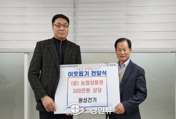 (경인뷰) 광성건기㈜는 지난 13일 저소득 가정을 위한 농협상품권 500만원 상당을 공도읍 지역사회보장협의체에 기탁했다.