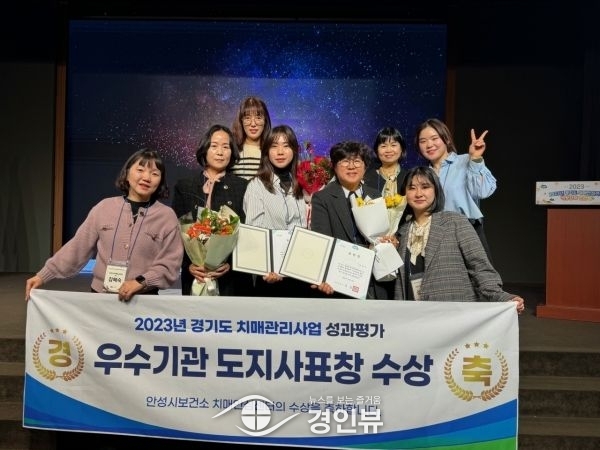 (경인뷰) 안성시보건소 치매안심센터는 지난 14일 ‘2023년 경기도 치매관리사업 성과평가’에서 우수기관으로 선정되어 도지사 기관표창을 수상했다고 밝혔다.
