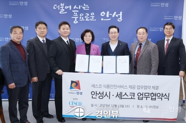 (경인뷰) 안성시는 ㈜세스코와 지난 13일 안성시장실에서 식품안전관리를 강화 및 서비스 제공을 목표로 업무협약을 체결했다.