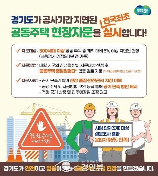(경인뷰) 경기도가 공사 기간이 지연된 공동주택 현장에 자문단을 파견하는 사업을 전국 최초로 추진한다.