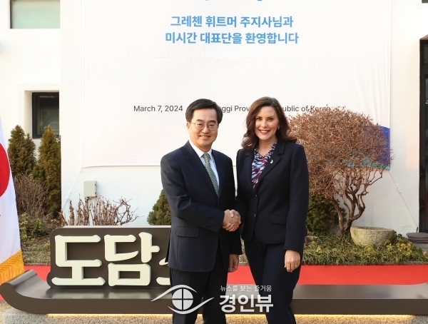 김동연 지사는 7일 도담소에서 그레첸 휘트머 미시간 주지사를 만나 “첨단모빌리티, 신재생에너지, 청년 교류 등에 대한 협력관계를 구축했으면 한다.