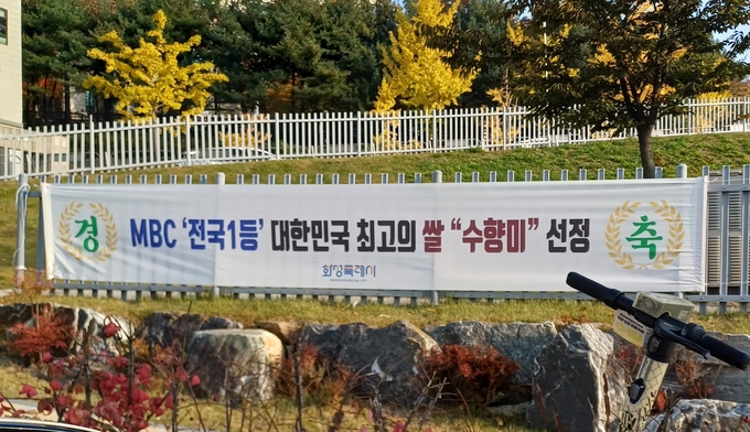 ▲ 최근 공중파 방송의 모 프로그램에서 화성특례시의 수향미가 대한민국 최고의 쌀로 선정되자 이를 축하하는 현수막이 화성시 곳곳에 걸렸다.
