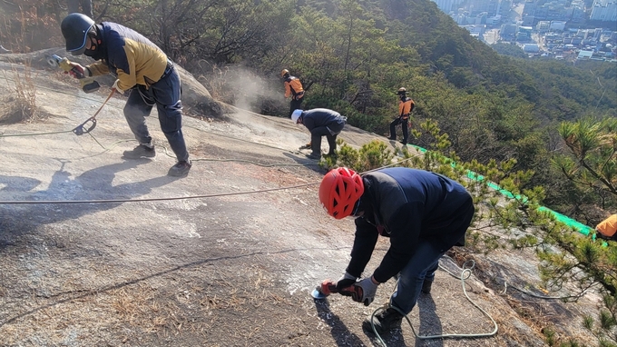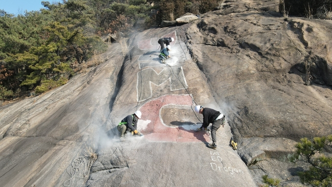 복원 작업은 천보산 내 두 지점(각각 90㎡, 26㎡)에 걸쳐 남아있던 미군부대 마크를 대상으로 진행됐다. 과거 미2사단 소속 3개 부대가 주둔했던 곳으로, 그 흔적이 남아 자연 경관을 방해하고 있었다.