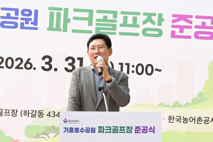 용인특례시(시장 이상일)는 31일 기흥호수 수변산책로에 14홀 규모의 파크골프장 준공식을 개최했다.