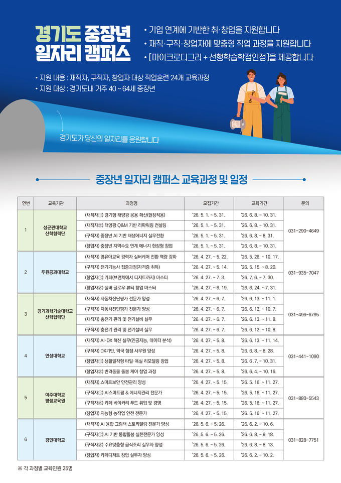 교육과정별 세부 내용과 모집 일정은 경기도(gg.go.kr) 및 참여 대학 누리집에서 확인할 수 있다.