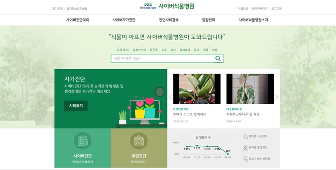 사이버식물병원은 식물의 이상 증상 사진과 재배 정보를 온라인으로 등록하면 전문가가 원인을 진단해 주는 서비스다. 2025년 기준 연간 방문 건수는 약 111만 건에 이르며, 반려 식물 시장 확대에 따라 관련 진단의뢰가 꾸준히 증가하고 있다.