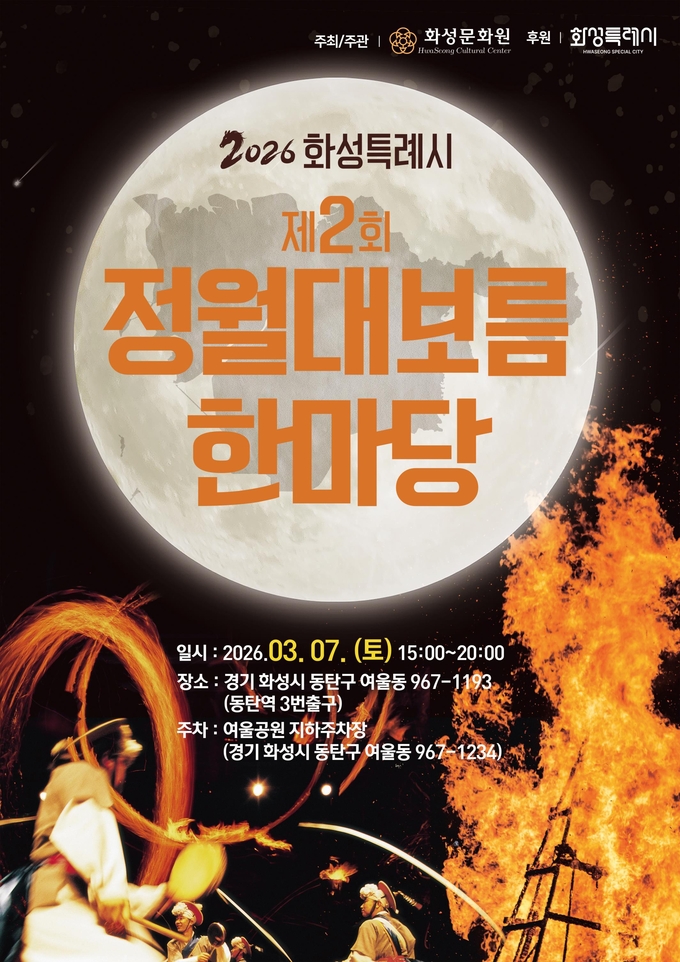 올 한해 평안과 행복을 기원하는 정월대보름 축제가 오는 3월 7일(토) 화성시 여울동에서 화성문화원의 주최 ‧ 주관과 화성특례시의 후원으로 개최된다.