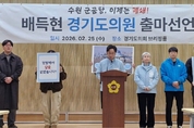 배득현 진보당 경기도의원 후보가 지난 2월 25일 오전 11시 경기도의회 브리핑룸에서 출마 선언 기자회견을 열고 6·3 지방선거 출마를 공식 선언했다. 배 후보는 수원시 제4선거구(고색동·금곡동·오목천동·호매실동)에서 도의원 선거에 나선다. ▲ 출마 선언을 하는 배득현 예비후보 이날 기자회견에서 배 후보는 수원 군 공항 폐쇄를 핵심 의제로 제시하며, 이를 청년 주거·일자리·기후 위기 대응을 아우르는 ‘수도권 정책 전환 프로젝트’로 추진하겠다고 밝혔다. 배 후보는 출마 선언문에서 자신을 “수원에서 살아가는 청년이자, 청년들과 함께 현장을 만들어온 정치인”이라고 소개하며 청년 세대가 마주한 구조적 불안을 언급했다. 그는 “새도 둥지가 있어야 알을 낳지만, 평범한 청년들은 둥지를 만들 기회조차 박탈당한 채 살아가고 있다”라며 “집값 폭등과 불안정한 노동 환경 속에서 저 역시 전셋집에 살며 수원을 떠나지 않고 계속 살아갈 수 있을지 고민하는 청년 중 한 명”이라고 말했다. 이어 배 후보는 청년들과 함께한 실제 활동을 강조했다. 그는 “청년 당사자로서 전세사기 피해자들과 함께 현장을 조직하고, 청년 활동가들과 정책 토론과 실천을 이어왔다”라며 “청년의 삶을 말로 대변