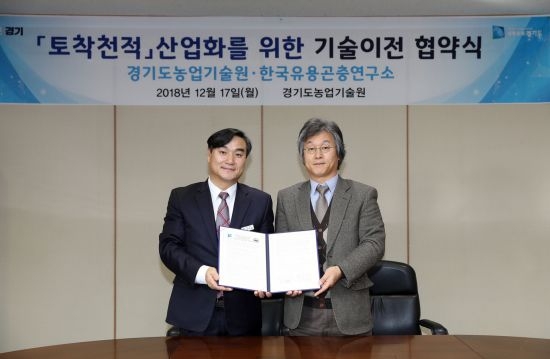 경기도농업기술원은 축산농가에 발생하는 집파리를 친환경적으로 방제할 수 있는 토착천적 사육기술의 산업화를 위한 기술을 개발, 17일 민간 업체와 이전 계약식을 체결했다고 밝혔다.