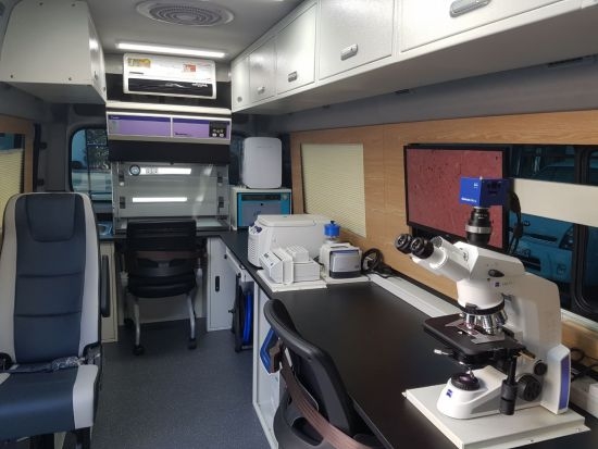 이동진료차량은 현미경, 유전자 증폭장비 등 7종의 검사 장비가 탑재돼 있어 수산생물의 바이러스성, 세균성, 기생충성 질병 감염 여부를 현장에서 곧바로 검사할 수 있는 것이 특징이다.