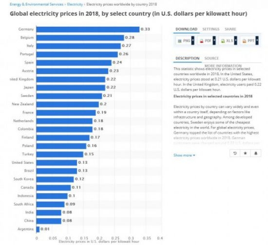 ▲ 2018년 기준 kw/h 글로벌 전기세