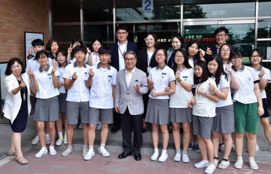 ▲ 이재정 경기교육감(사진 가운데)과 학생들.