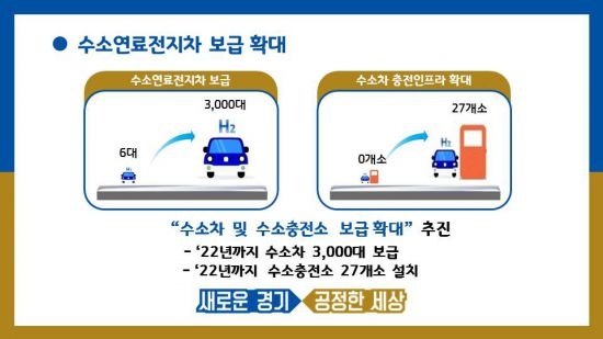 오는 2022년까지 6,643억 원의 예산을 투입해 ▲전기차 약 3만대 ▲전기버스 569대 ▲전기충전소 1만5천기 ▲수소차 3,000대 ▲수소충전기 27대 등 친환경차를 확대.보급하고 관련 인프라를 구축해 나간다는 계획이다.