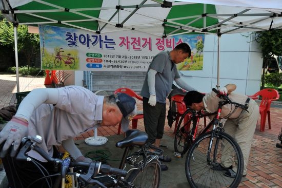 ▲ 지역공동체 일자리 사업 중 하나인 자전거 정비소 운영
