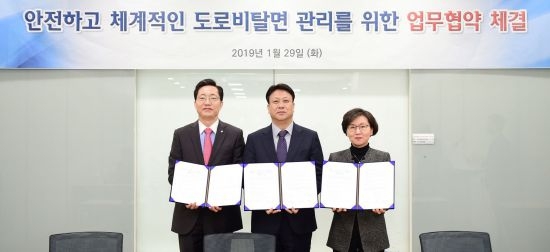 경기도는 29일 오후 용산역 ITX회의실에서 국토교통부, 한국시설안전공단과 업무협약을 맺고, 올해부터 ‘도로비탈면 유지관리시스템(CSMS)’을 전국 지방자치단체 최초로 도입 추진한다고 밝혔다.