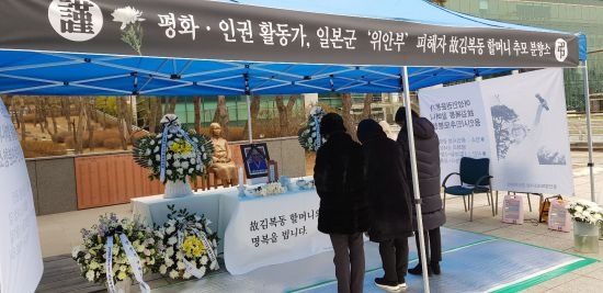 지난 2017년 시민성금을 모아 평화의 소녀상을 건립한 바 있는 시민관리위원회는 오는 2월2일까지 분향소를 운영할 예정이다.
