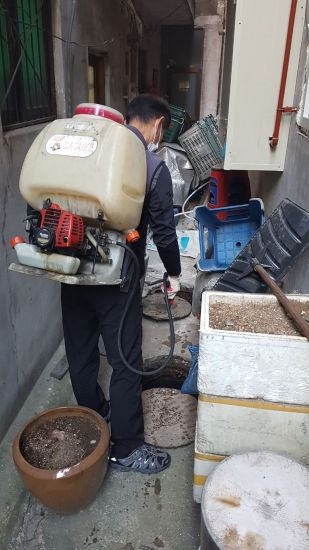 모기 방제는 정화조와 집수정의 유충 서식 여부를 조사한 뒤 유충 구제 투입과 분무소독을 병행하는 방식으로 이뤄진다.
