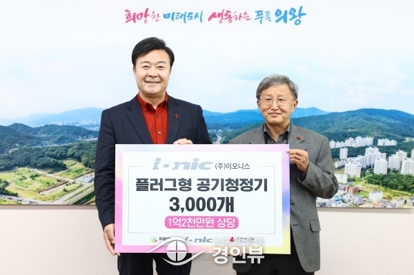 (경인뷰) 의왕시는 서울시 금천구에 위치한 ㈜이오니스에서 플러그형 공기청정기 3,000개를 전달했다고 16일 밝혔다.