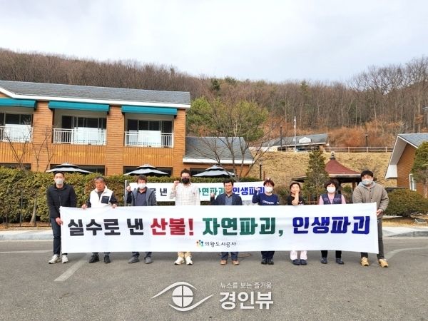 (경인뷰) 의왕도시공사가 지난 9일 바라산자연휴양림에서 산불예방 홍보 캠페인을 실시했다.