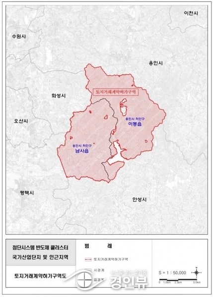 용인특례시는 국토교통부가 국가산업단지 사업 예정지인 처인구 남사읍과 이동읍 전역 129.48㎢을 토지거래허가구역으로 지정 공고했다고 17일 밝혔다.