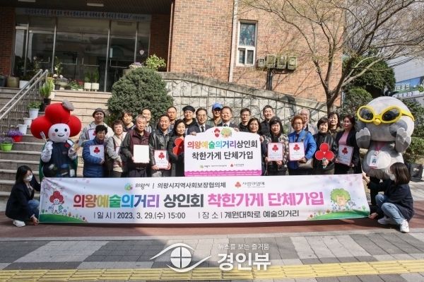 (경인뷰) 의왕시는 3월 29일 내손1동 예술의거리에서 ‘의왕예술의거리 상인회’ 소속 21개 업체에 착한가게 현판을 전달하는 행사를 진행했다고 밝혔다.
