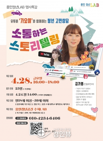 (경인뷰) 용인특례시가 유명 유튜버 ‘가요이 키우기’를 초청해 지역 내 청년을 위한 특강을 진행한다고 11일 밝혔다.