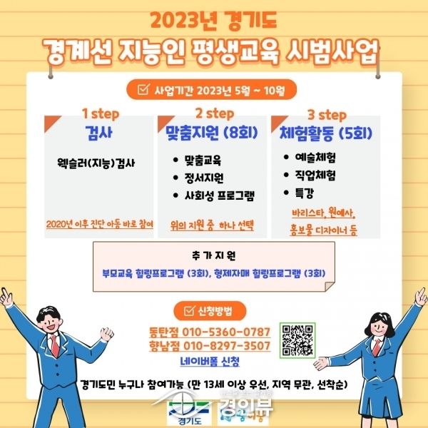 한편 도는 ‘경계선 지능인 평생교육 지원에 관한 조례’를 2022년 4월에 제정했으며 올해 시범사업과 더불어 기본계획 수립과 시행을 위한 정책연구용역 추진 등 경계선 지능인의 삶의 질 향상과 사회적 인식 확산을 위해 노력하고 있다.