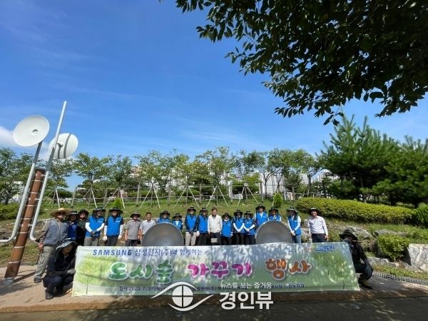 (경인뷰) 삼성전자 임직원 등 17명이 지난 27일 통복천 참여의숲에서 ‘도시숲 가꾸기 행사’를 진행했다.